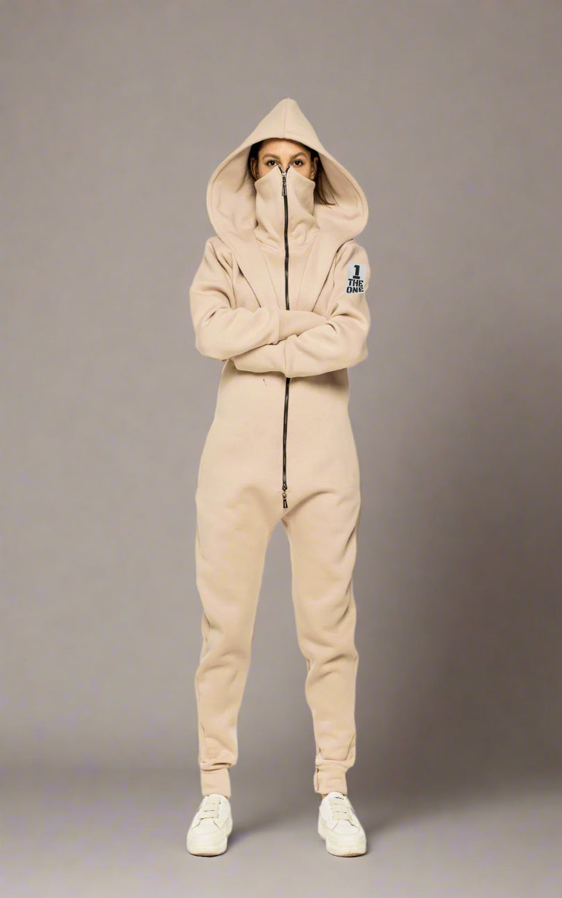 Однією з особливостей цього комбінезона є його величезний капюшон, який дозволяє сховатися від зайвого світла та створити затишну обстановку під час подорожей, відпочинку чи прогулянок. Подовжені манжети з прорізом для великого пальця не тільки надають комбінезону стильного вигляду, але й забезпечують додатковий захист від холоду.