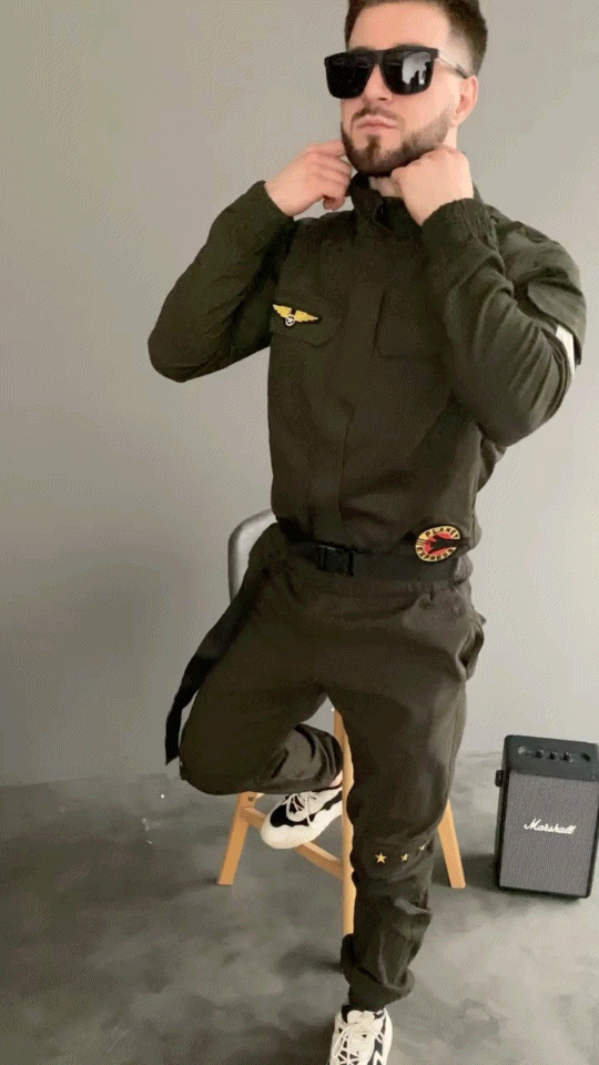 Пояс, що входить до комплекту, створює легкий акцент спереду, надаючи силуету ще більш витончений контур. Комбінезон "Авіатор" пропонує повну свободу рухів, не обмежуючи їх.
