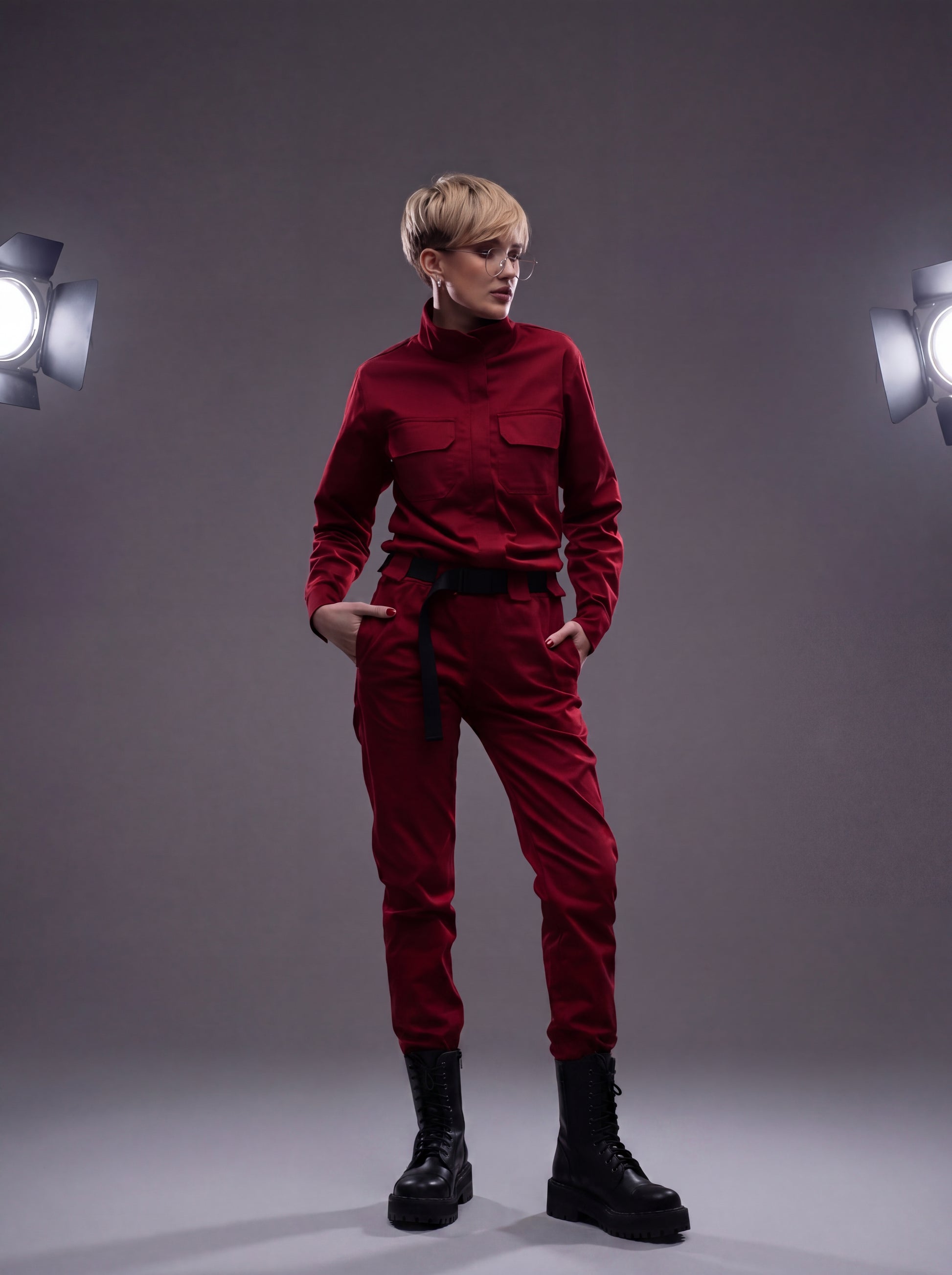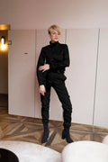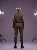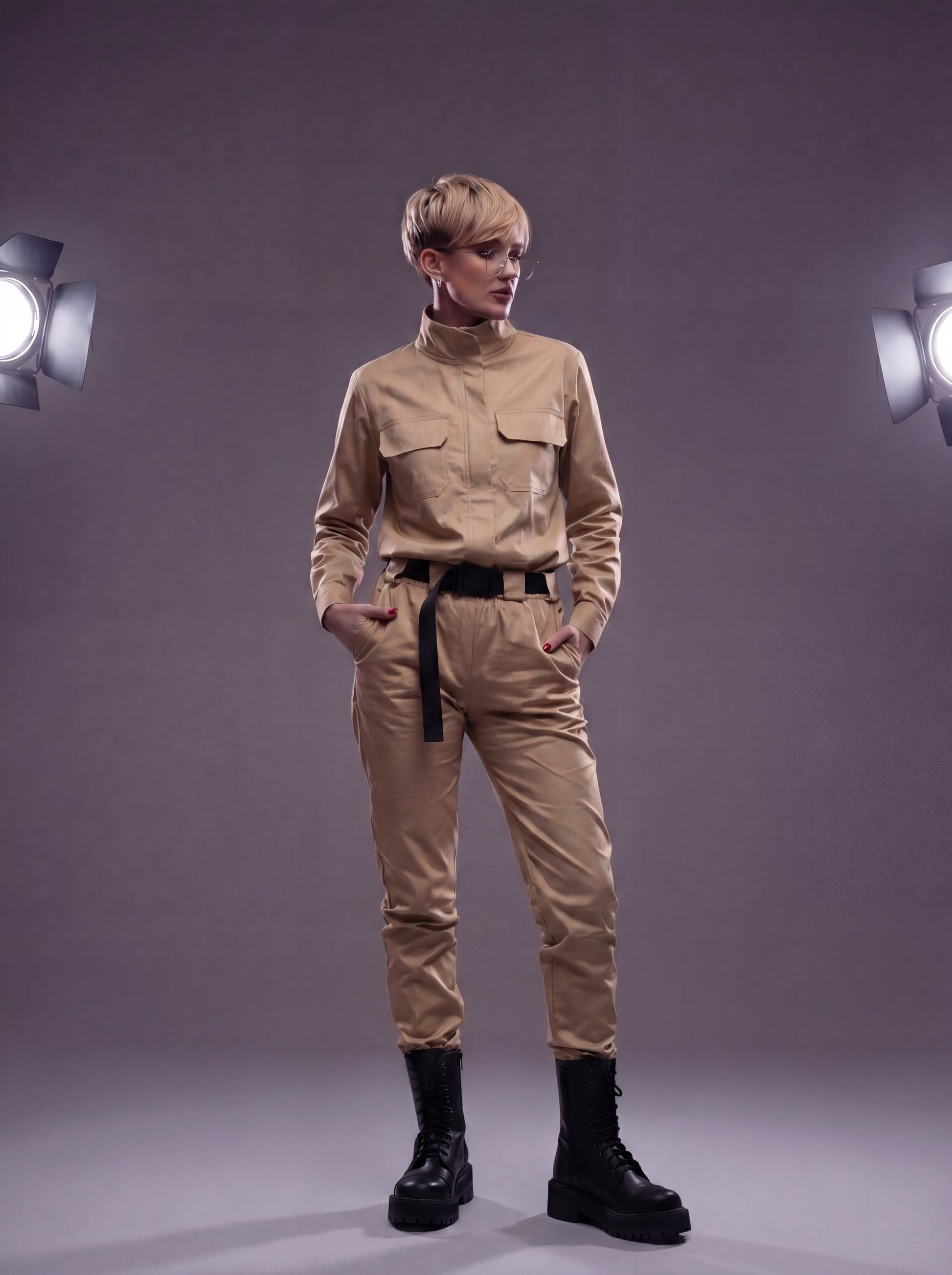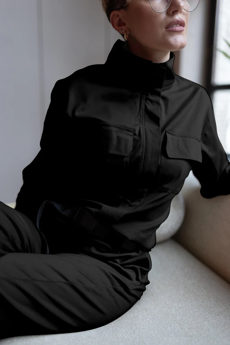 Пояс, що входить до комплекту, створює легкий акцент спереду, надаючи силуету ще більш витончений контур. Комбінезон "Авіатор" пропонує повну свободу рухів, не обмежуючи їх.