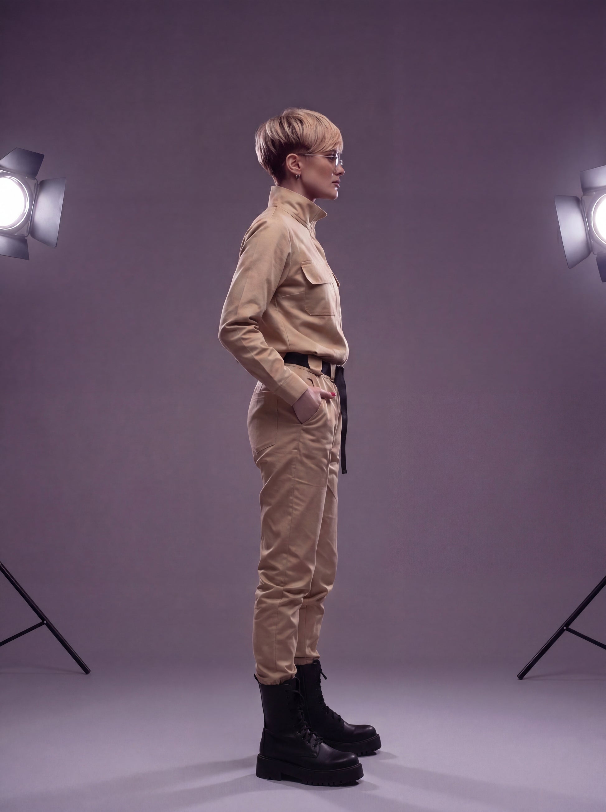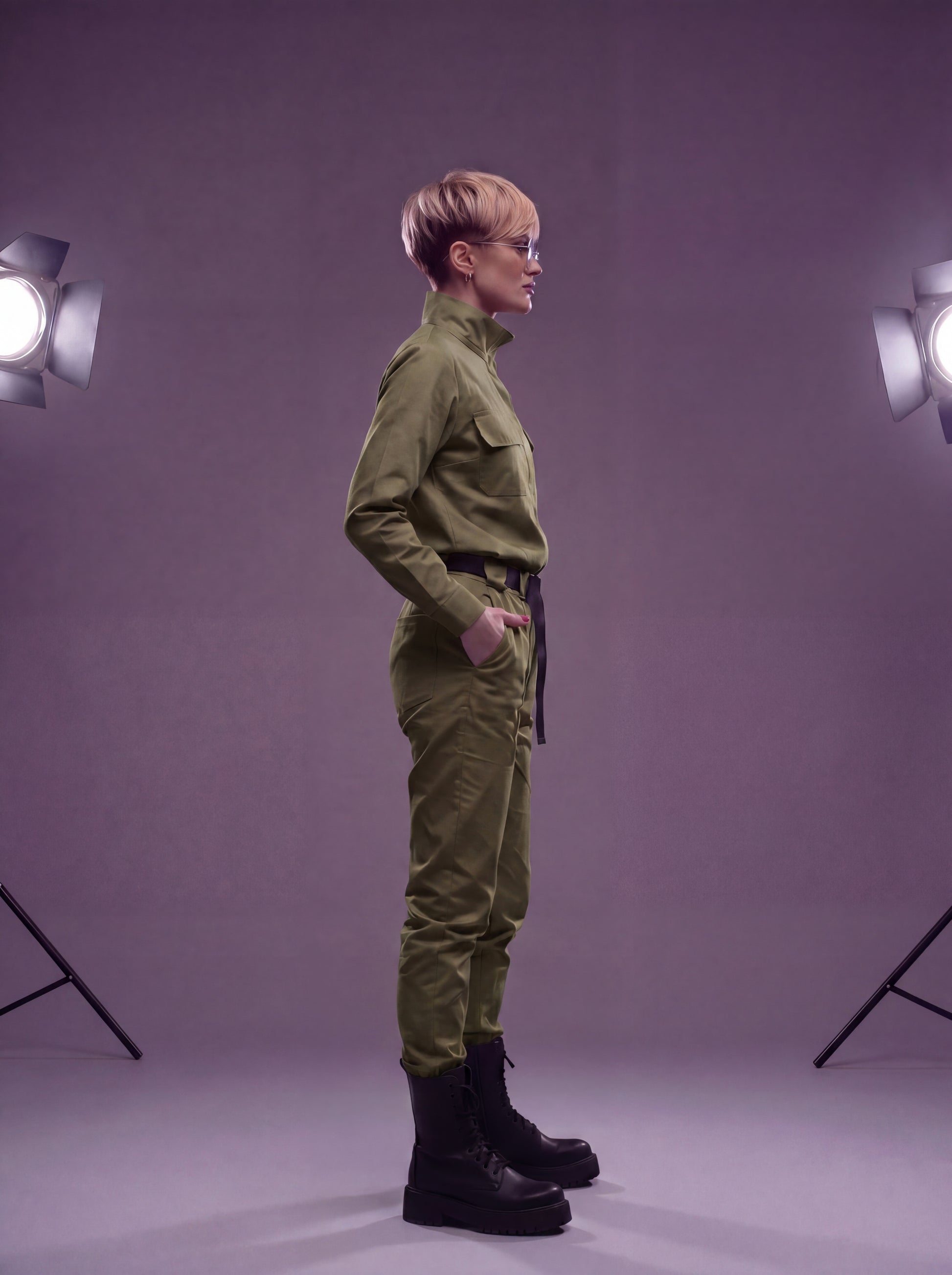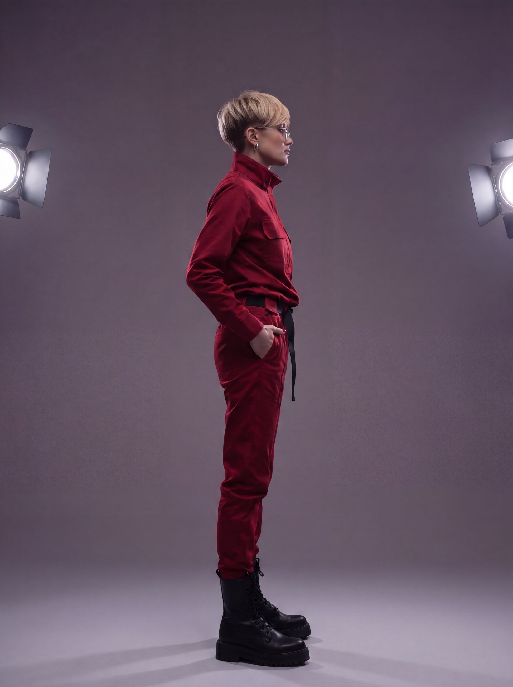 Пояс, що входить до комплекту, створює легкий акцент спереду, надаючи силуету ще більш витончений контур. Комбінезон "Авіатор" пропонує повну свободу рухів, не обмежуючи їх.